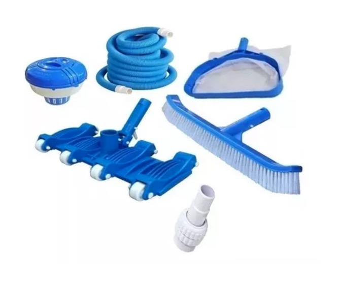 Skimmer – toma de fondo – acople rápido – retornos orientables – cepillos – limpiafondo – mango telescopico – mangueras – sacahojas